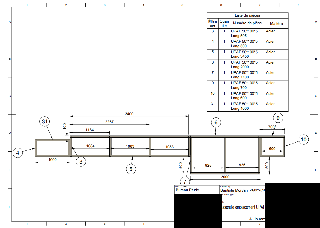 Exemple de plan de fabrication réalisé en entreprise. Quelques informations n'y figurent pas car elles ont été mises à l'écrit sur les plans.